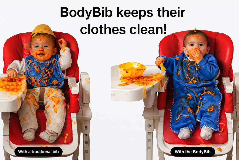 After testing and tweaking with real messy toddlers, BodyBib became the solution that finally worked.